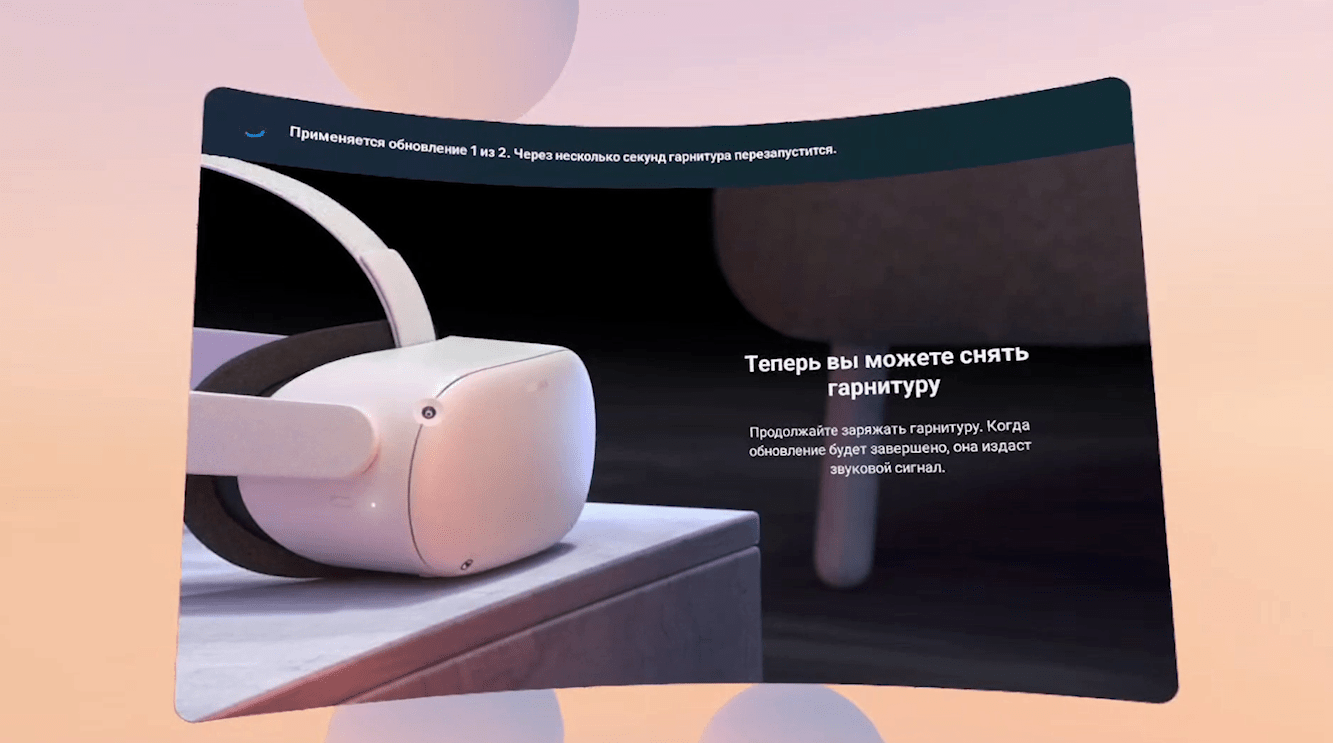 Первым делом аппарат попросит у вас подключиться к WiFi и сразу начнет ставить обновления. На этом этапе можно снять его и заняться своими делами (особенно если вы используете VPN), по окончании процесса VR-шлем радостно перезагрузится и вы услышите звук запуска операционной системы.