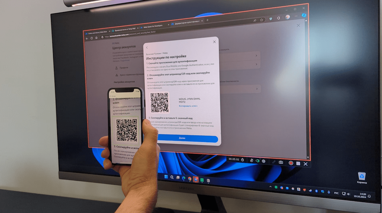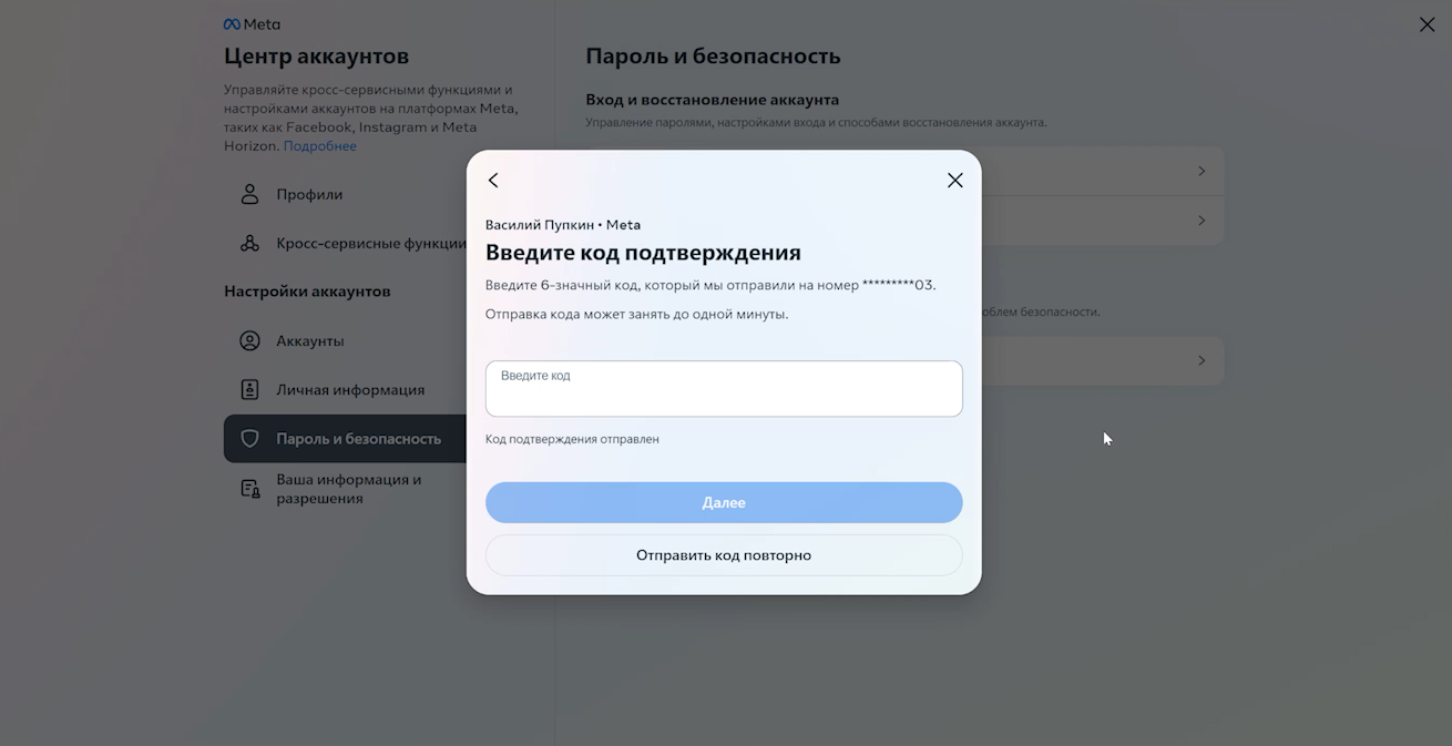 Берем в руки телефон с установленным приложением, запускаем его, предоставляем все необходимые разрешения и логинимся. В процессе Meta отправит вам ещё одно письмо с кодом подтверждения на почту, вводим его в соответствующее поле.