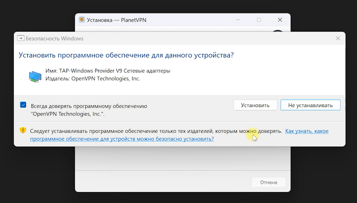 Ждем окончания установки, если появляется дополнительное окно, то выбираем вариант «Установить».
